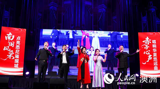 文艺汇演环节精彩纷呈。南艺原创歌曲《我爱南艺我爱宁》温情开场,笛子独奏、男中音演唱、京剧《贵妃醉酒》、二胡独奏《查尔达什》等节目轮番上演,赢得阵阵掌声。悉尼歌剧院歌唱家祁浩田的独唱将现场气氛推向高潮。压轴曲目《我的祖国》由中澳艺术家深情合唱,为整场演出画上圆满句号。(刘美鹭)