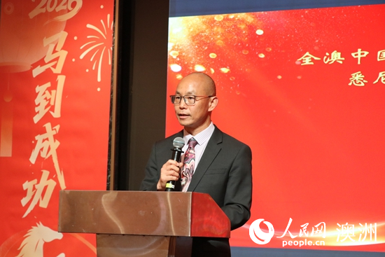 肖千在致辞中表示,春节象征着丰收的喜悦与团圆的温馨,蕴含着人与自然和谐共生的理念,体现了全人类共同的文化价值。在此共庆马年春节,正是中澳文明交流互鉴的生动体现。过去一年,中澳关系保持良好发展势头,约140万旅居澳大利亚的华侨华人发挥桥梁纽带作用,为中澳关系的稳定发展作出了积极贡献。